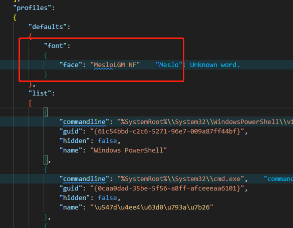 以管理员身份打开"Windows Terminal",ctrl + shift + ,(逗号) 打开settings.json配置文件,将以下代码写入到defaults下: